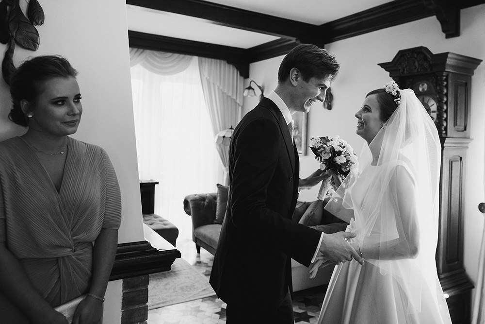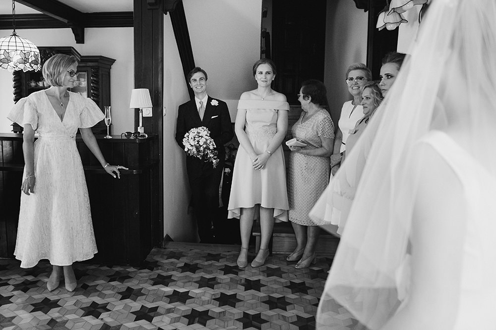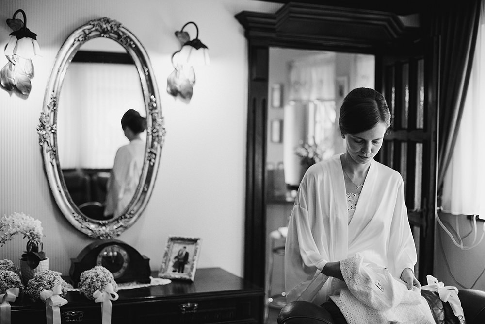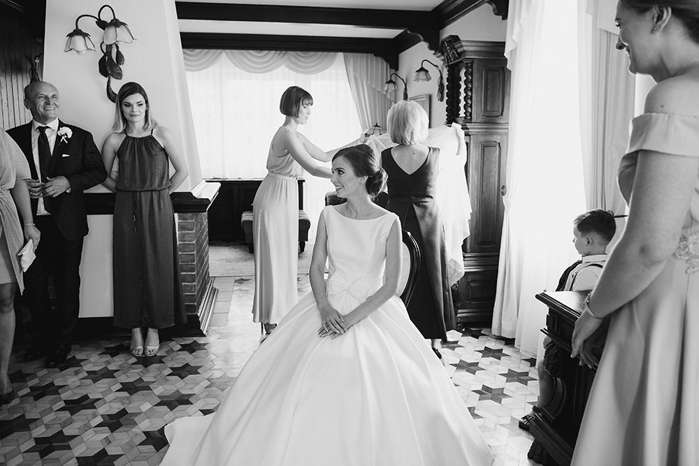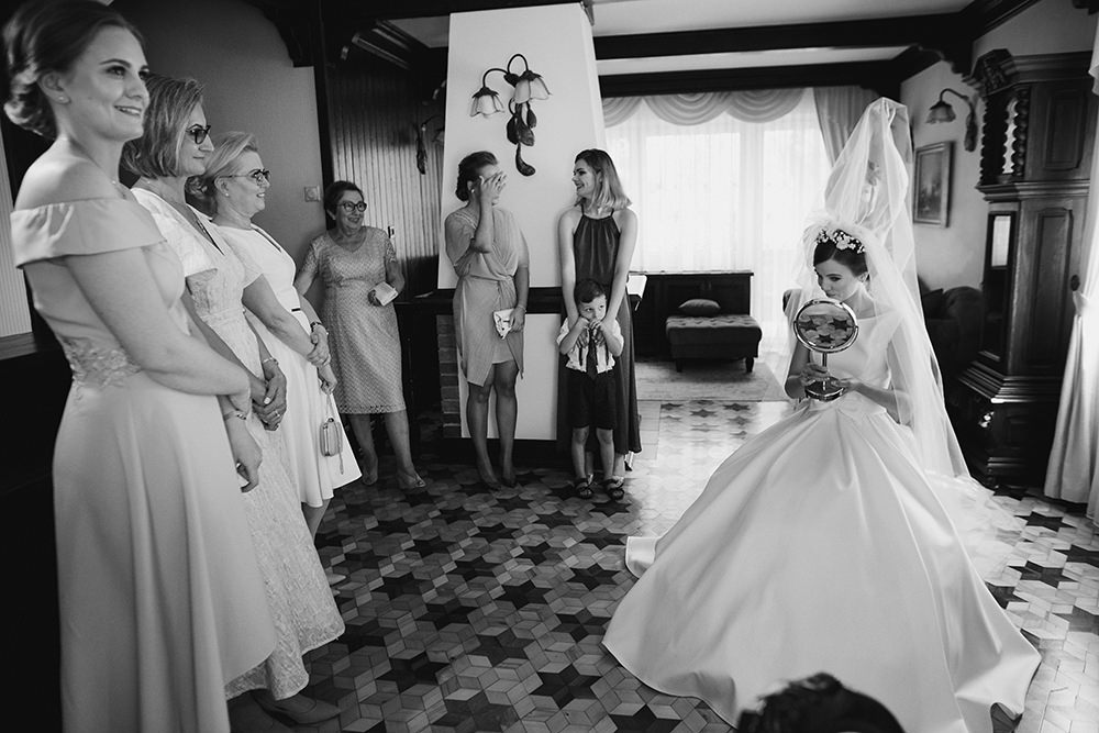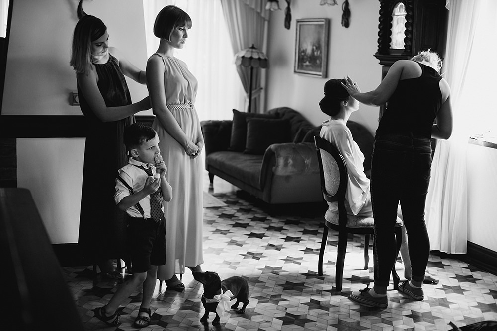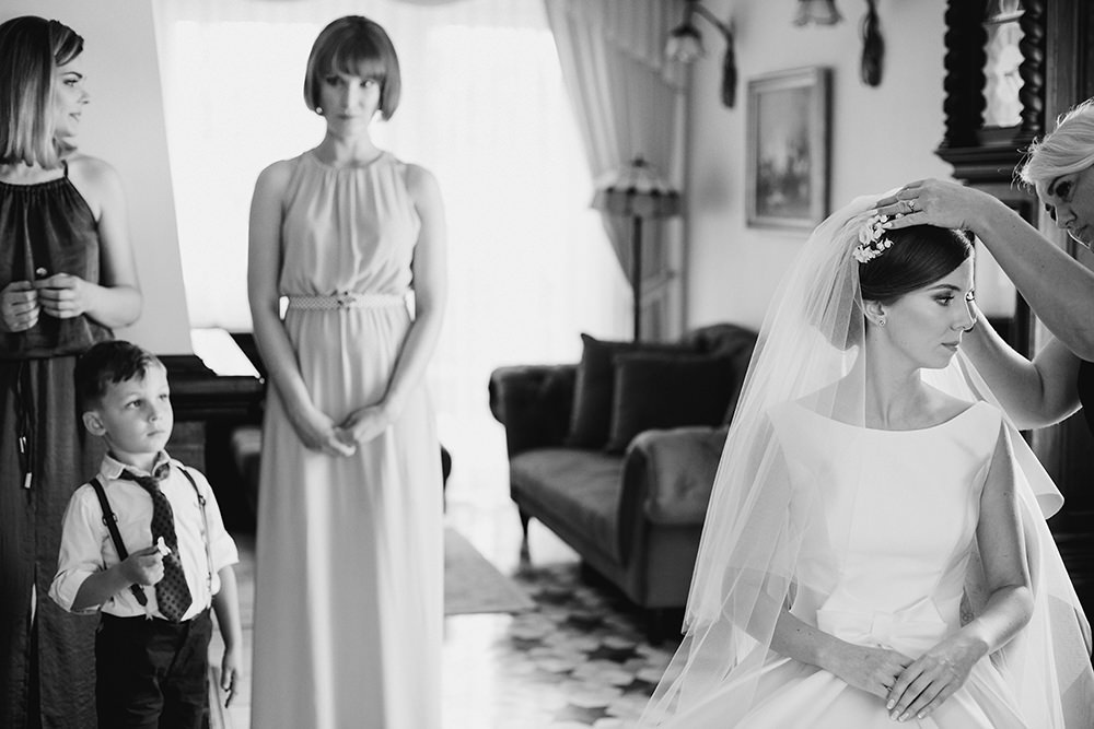 Klimatyczne zdjęcia ślubne. Co to oznacza? Złapana ulotność, trochę więcej zabawy światłem a może skupienie się na emocjach jakie w dniu ślubu wybuchają co i raz? Z tą cudowną rodziną spotkałam się po raz kolejny, już wiedziałam że pomimo naszej polskiej powściągliwości będzie po włosku – emocjonalnie. By jeszcze bardziej to uwypuklić chciałam Wam pokazać cały reportaż w czarnobieli. Julia z Leszkiem dostali też wersje kolorowe zdjęć, ale ja dzisiaj decyduję się pokazać ten reportaż właśnie w takiej formie.